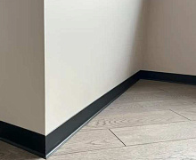 Особенности монтажа: данный алюминиевый плинтус крепится к стене на жидкие гвозди. Для оформления внутренних и наружных углов используется специальная алюминиевая фурнитура.